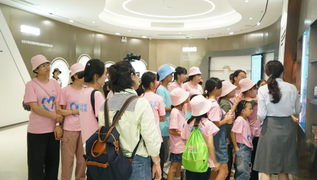 紧接着,孩子们来到了建党百年庆典红旗——070号红旗前。讲解员讲述了BC贷药业集团与庆典红旗的深厚渊源。孩子们听得津津有味,眼中闪烁着对党和国家的热爱与敬仰。
